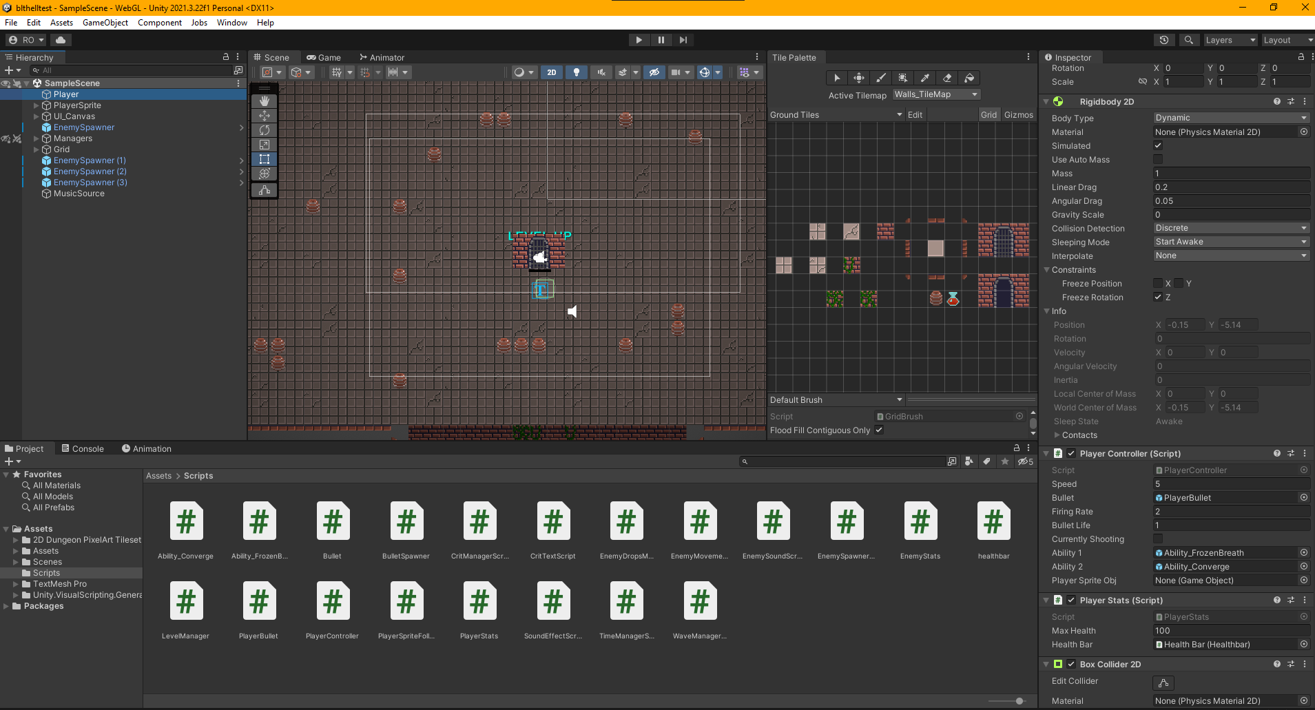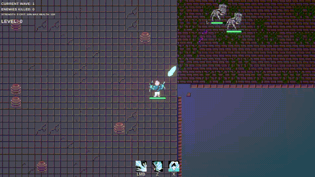 My first ever game jam entry, with the theme 'Aqua' I created a game where a water wizard has become trapped in a dungeon with no way out, the wizard must fight off waves of enemies, however this only extends the time before their eternal doom. Play here All assets and sounds except the level art are made by me. The source code is available on my GitHub. Skills Gained